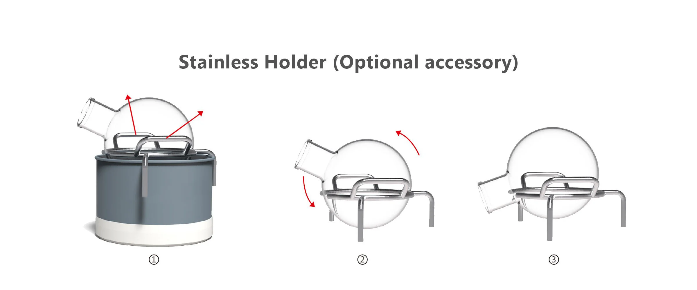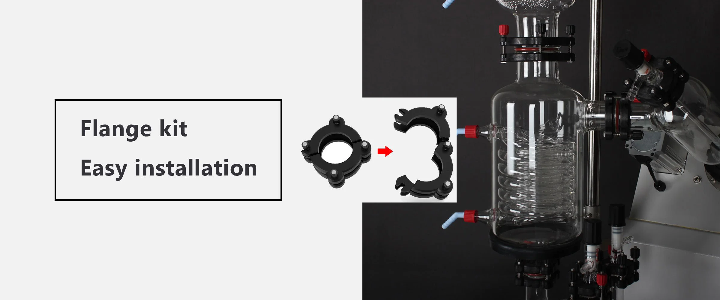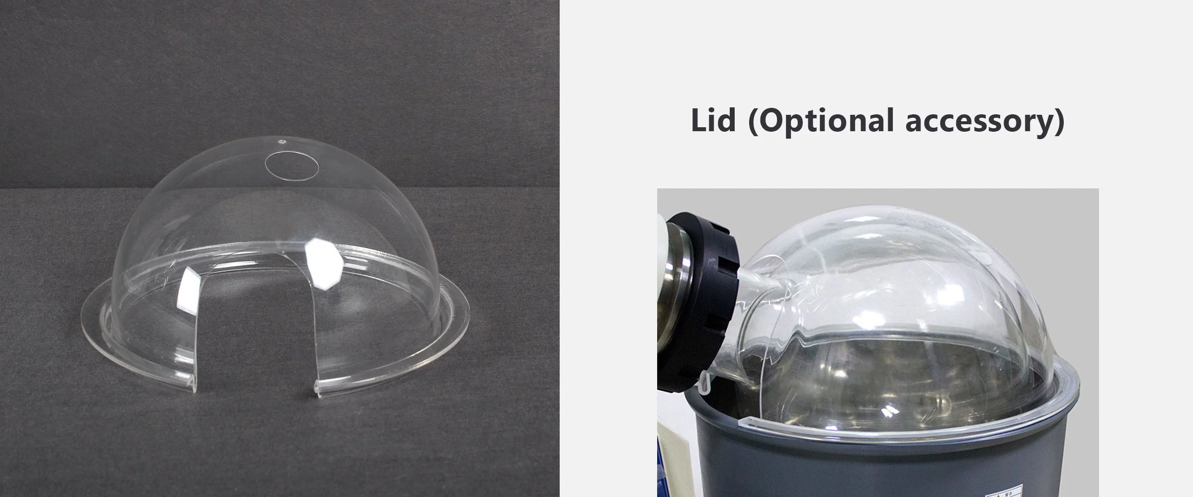 Buharlaştırma şişesinin büyük kapasitesi ve geniş açıklığı, daha büyük buharlaşma yüzeyi sağlar. Buharlaşma şişesi, su banyosu ile sürekli ısıtıldığında dönmeye devam eder, solvent vakum koşullarında daha verimli buharlaşır.